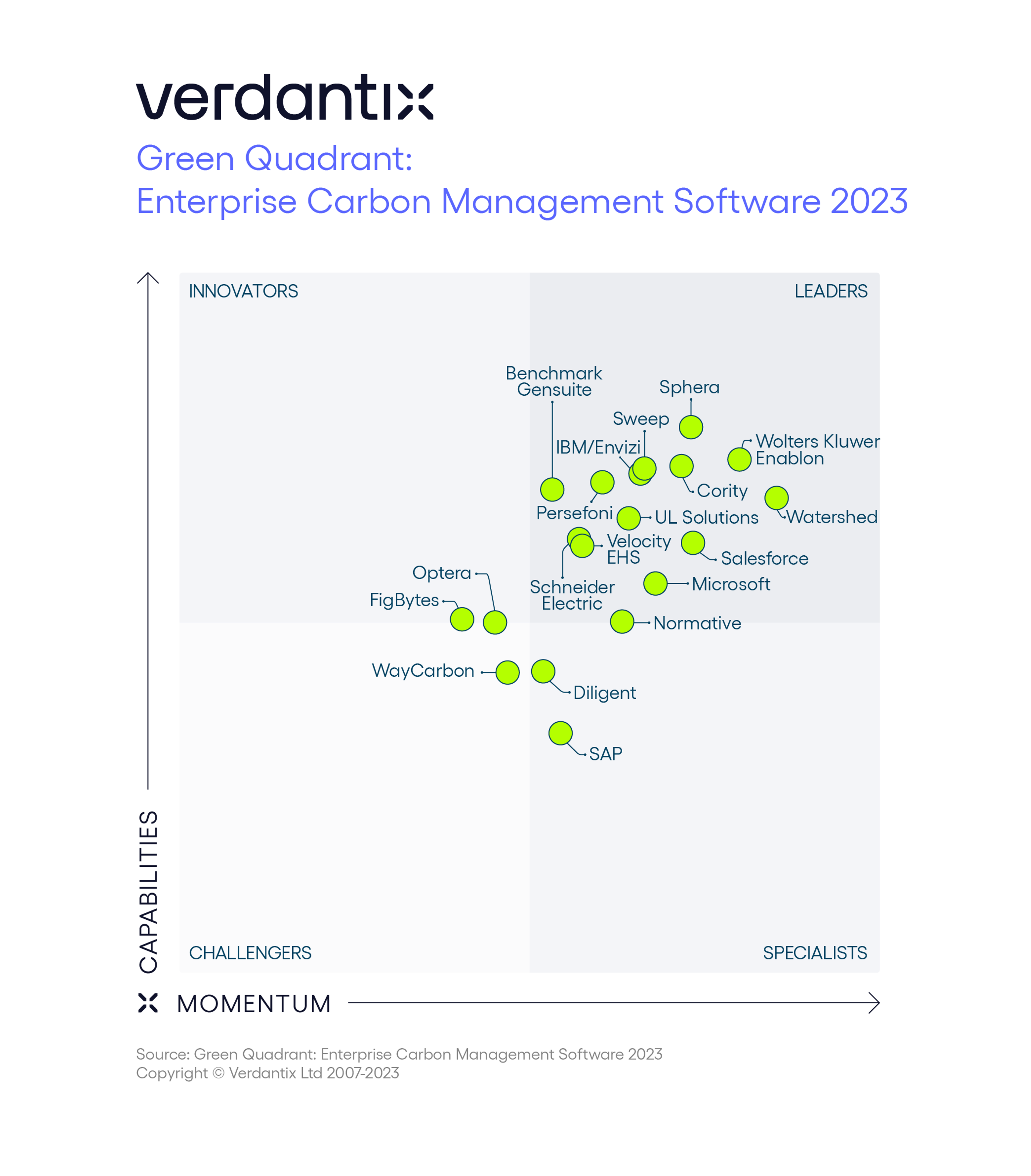 The market landscape for carbon management software is evolving rapidly, and organizations are under pressure to manage and report high-quality carbon data to meet growing regulatory requirements and stakeholder demands. In September 2023, Verdantix conducted a detailed fact-based comparison of the 19 most prominent carbon management software vendors in the market to help corporate buyers of carbon management software to quickly identify the best solution for their needs. Based on the proprietary Verdantix Green Quadrant methodology, the analysis encompassed two-hour live briefings, desktop research, and vendor responses to an extensive questionnaire.