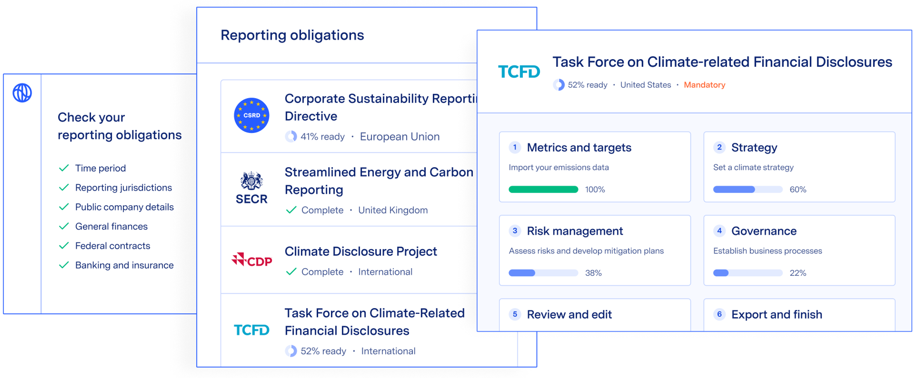 - Build high-quality reports, faster: Create reports efficiently using guided workflows with embedded climate intelligence. The product automatically pulls in data from your current emissions measurements, targets, and reduction plans to populate multiple, audit-ready reports simultaneously. This allows you to scale reporting, making the reporting process easier and more reliable year over year.